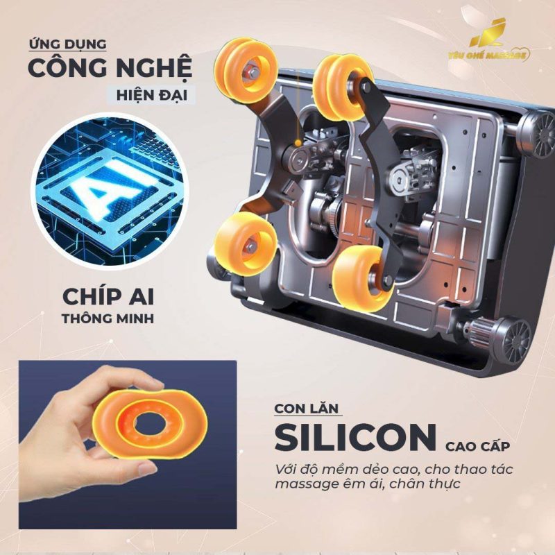 Hệ thống bi lăn silicon cao cấp: Ghế massage này đi kèm với bi lăn silicon cao cấp và khung ray SL siêu dài, giúp bi lăn di chuyển linh hoạt đa điểm và đa chiều. Điều này cho phép ghế massage xử lý toàn bộ các vùng đau nhức thường xuyên như cổ, gáy, lưng, hông, eo, mông, và đùi. Điều này giúp giảm căng cứng và mệt mỏi cơ bắp hiệu quả.
