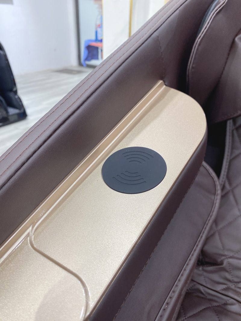 - Công nghệ sạc không dây cảm ứng: Được tích hợp ngay bên mặt tay ghế, giúp bạn sạc thiết bị mà không cần dây cắm phức tạp.